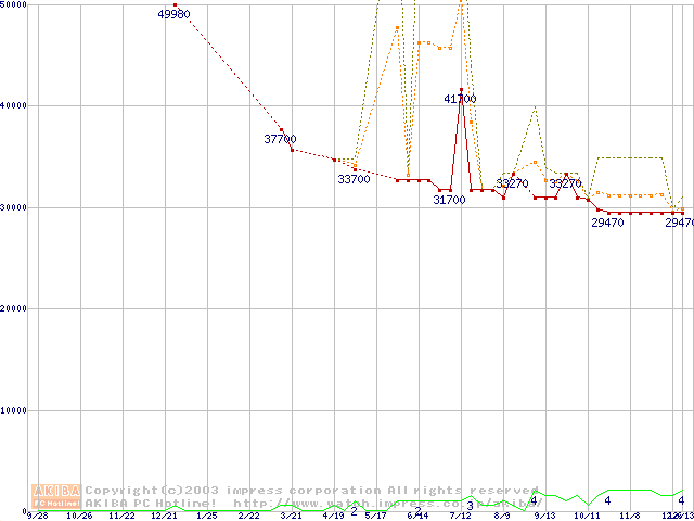 PC2700(DDR333) DDR SDRAM DIMM ECC対応 Registeredタイプの最安値推移