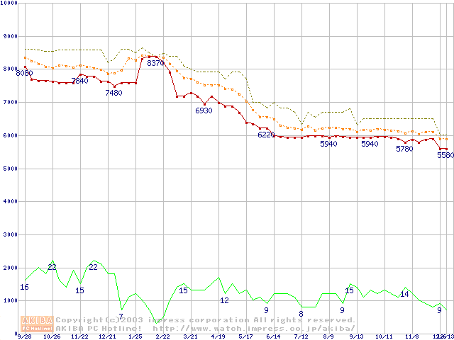 DiamondMax Plus 8 (7200rpm,2MB,UltraATA/133,FDB)の最安値推移
