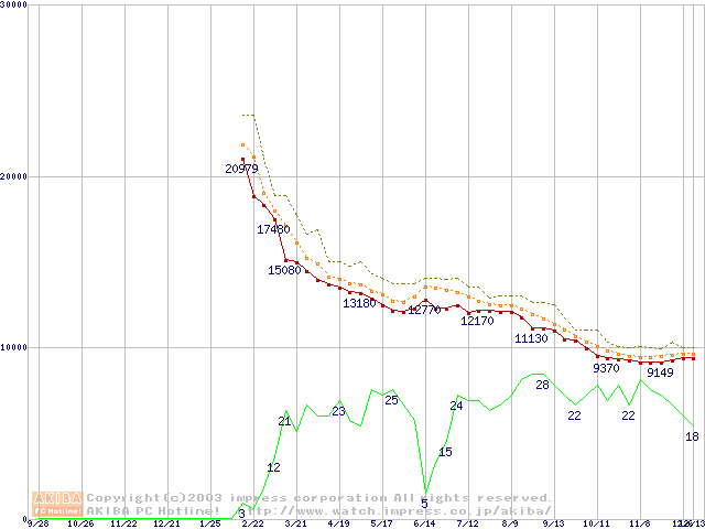 Deskstar 180GXP (7200rpm,8MB,UltraATA/100,FDB)の最安値推移