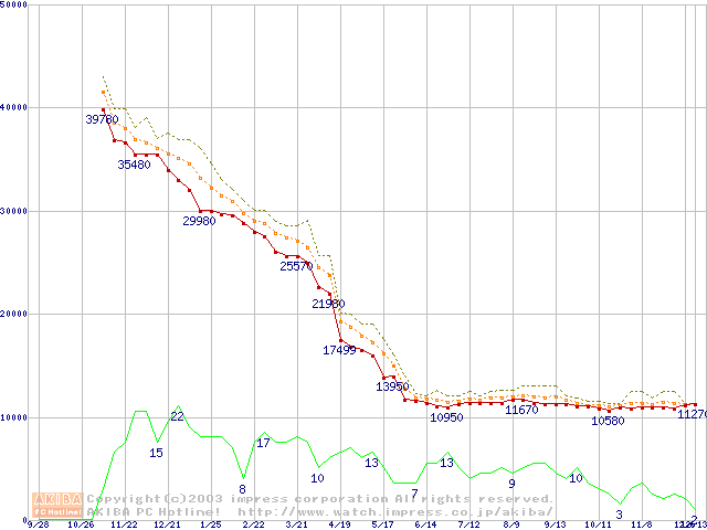 Socket A (OPGA,FSB 333MHz,L2 256KB,Thoroughbred)の最安値推移