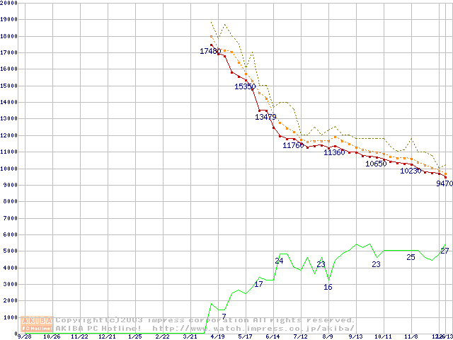 HDD主要製品の最安値推移