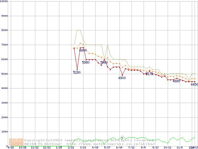 Socket 370 (PGA,FSB 133MHz,L2 64KB,Nehemiah)の最安値推移