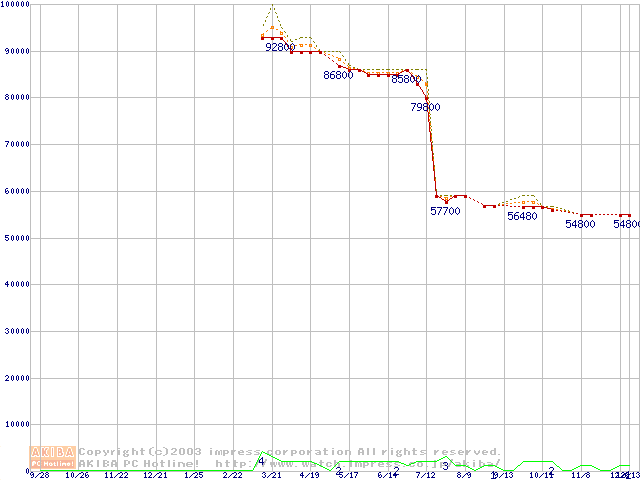Socket 603 (micro-PGA,FSB 400MHz,L2 512KB,Prestonia)の最安値推移