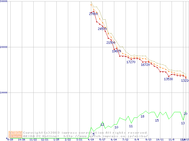 Barracuda 7200.7 (7200rpm,SerialATA,8MB,80GB/Platter,FDB)の最安値推移