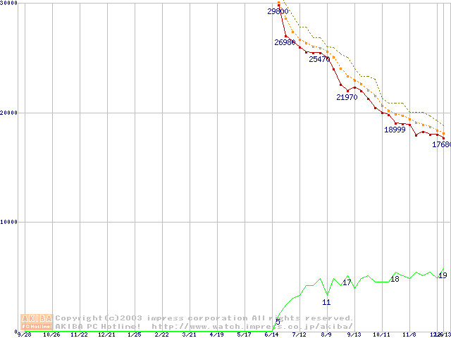 DiamondMax Plus 9 (7200rpm,8MB,SerialATA/150,FDB)の最安値推移