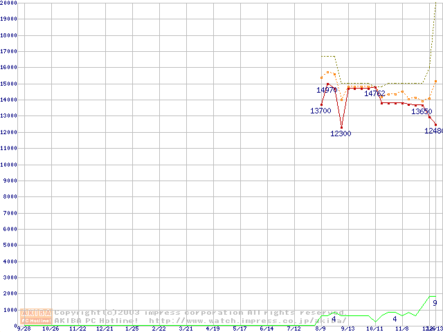 PC3200(DDR400) DDR SDRAM DIMM ECC対応 Registeredタイプの最安値推移