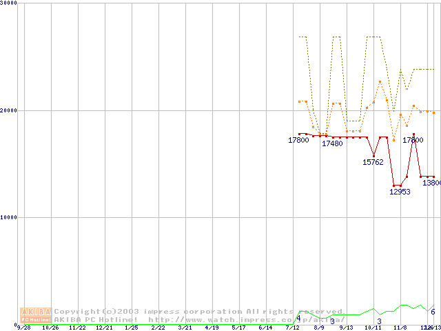 PC3700(DDR466) DDR SDRAM DIMMの最安値推移
