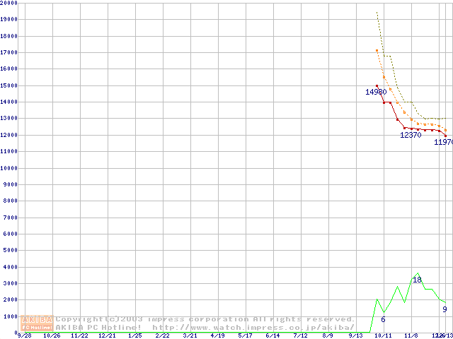 HDD主要製品(最安値1万円~1万5千円未満)の最安値推移