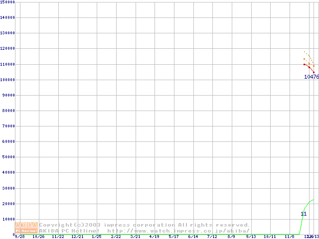 Socket 478 (micro-PGA,FSB 800MHz,L2 512KB,L3 2MB,Hyper-Threading,Gallatin)の最安値推移