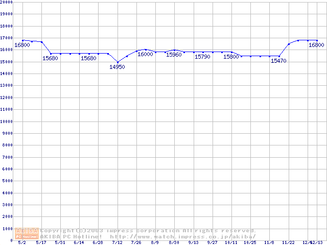 | [↑前グラフ]: | MKシリーズ (9.5mm,7200rpm,16MB,FDB)の最安値推移 |