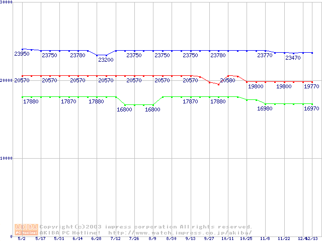 | [↓次グラフ]: | Socket 370 (FC-PGA,FSB 133MHz,L2 256KB,Coppermine)の最安値推移 |