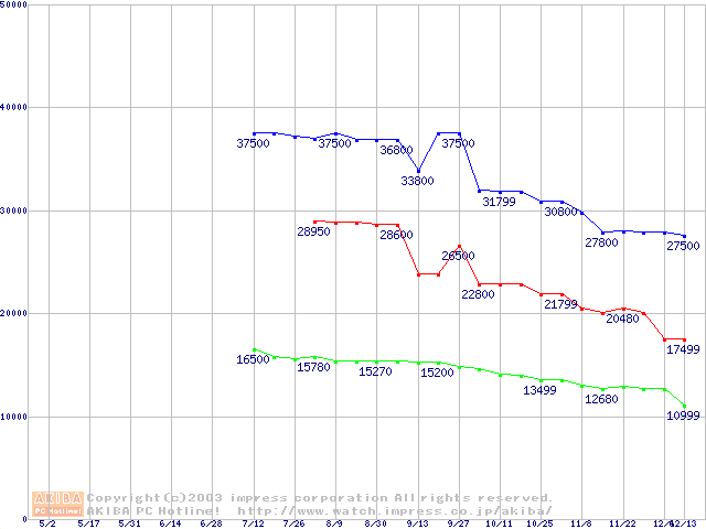 | [↓次グラフ]: | WD Caviar (7200rpm,UltraATA/133,2MB)の最安値推移 |