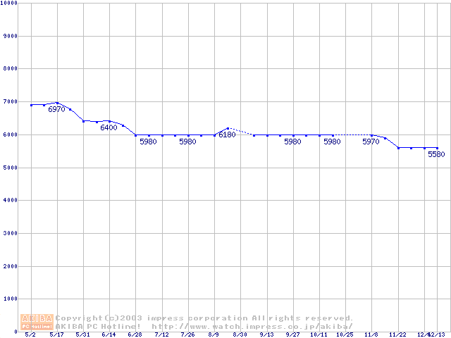 | [↑前グラフ]: | WD Caviar (7200rpm,UltraATA/100,2MB)の最安値推移 |