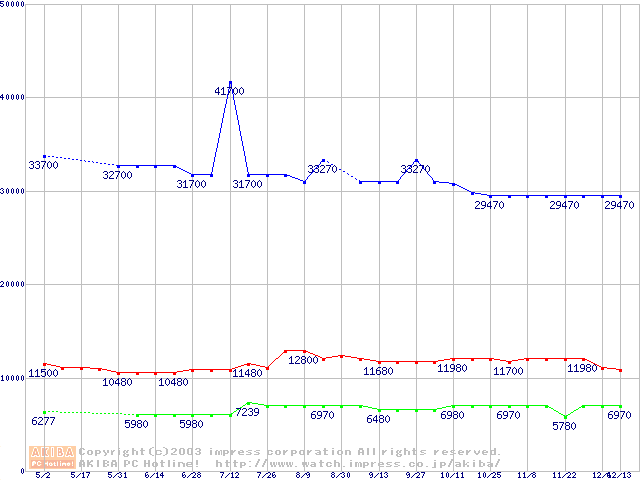 | [↓次グラフ]: | PC3000(DDR366) DDR SDRAM DIMMの最安値推移 |