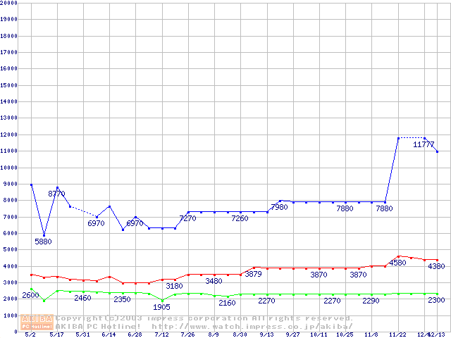 | [↓次グラフ]: | PC800-40 DRDRAM RIMMの最安値推移 |