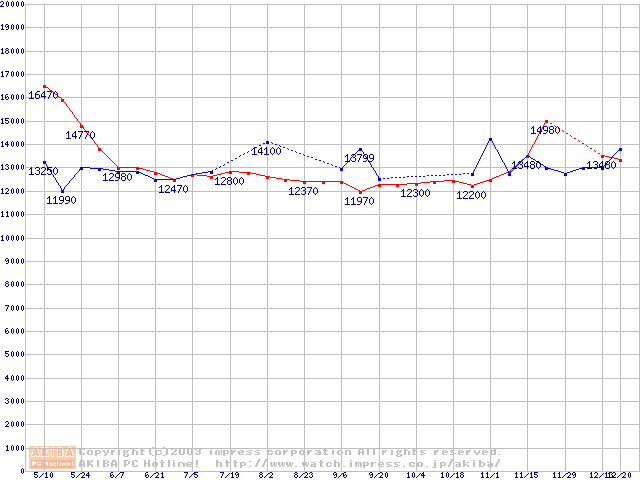 | [↑前グラフ]: | 2.5インチHDD 20GB~40GB未満(9.5mm厚)の最安値推移 |