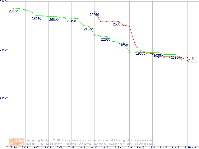 | [↓次グラフ]: | 2.5インチHDD 80GB以上(9.5mm厚)の最安値推移 |