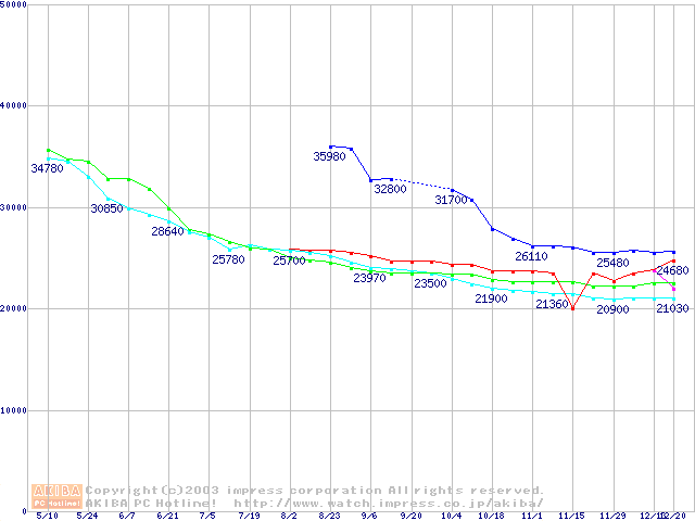 | [↓次グラフ]: | 2.5インチHDD主要製品の最安値推移 |