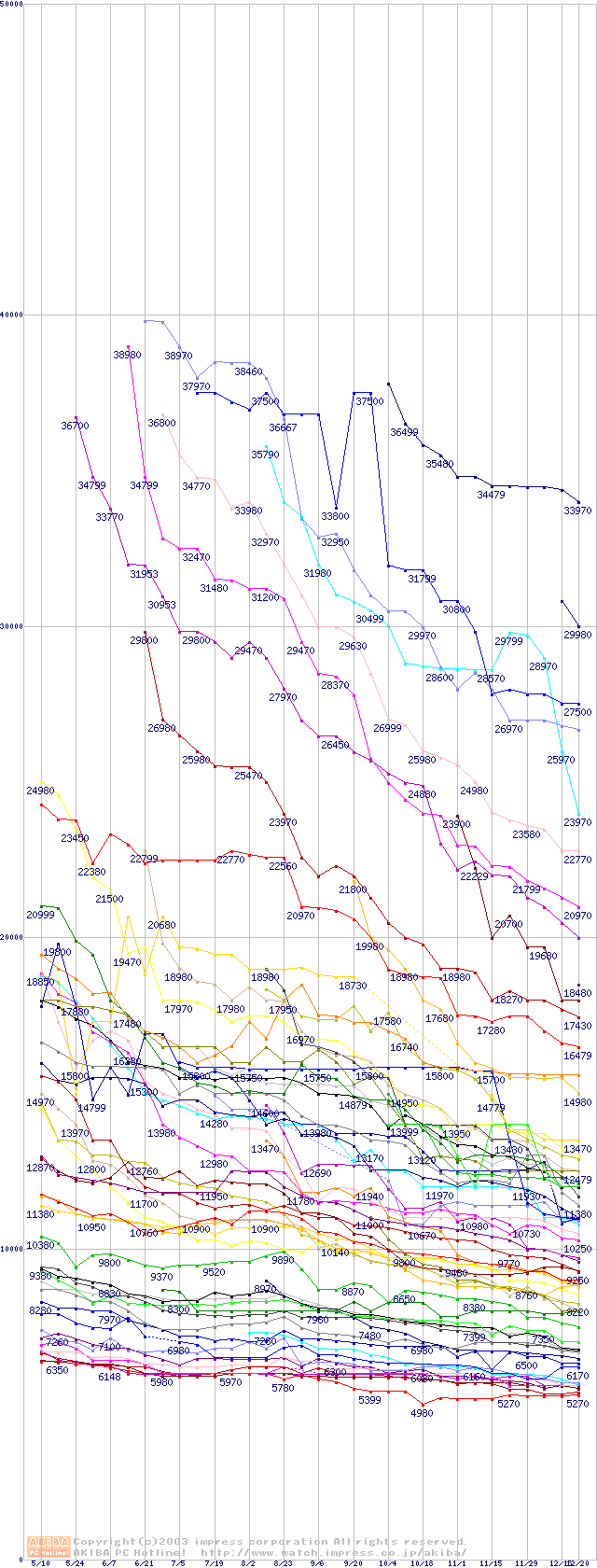 ※製品名をクリックすると個別のグラフを表示します ※点線部は販売店が確認できなかった、または調査データがないことを示します |
