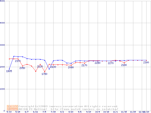 256MBモジュールの最安値推移