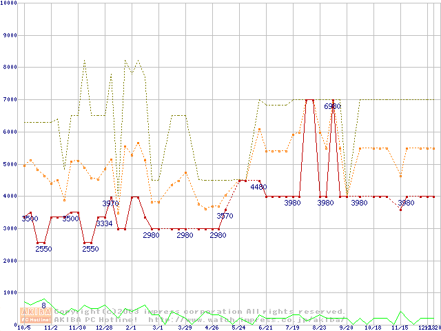 PC133 SDRAM DIMM CasLatency=3 ECC対応の最安値推移