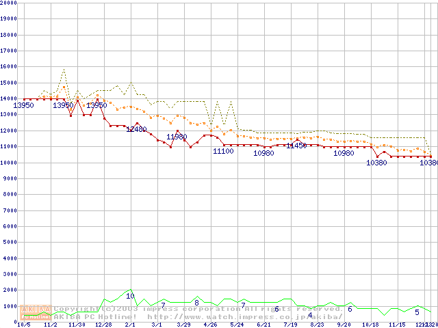 Socket 370・FSB 133MHzの最安値推移