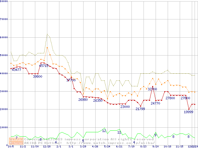 PC2100(DDR266) DDR SDRAM DIMM ECC対応 Registeredタイプの最安値推移
