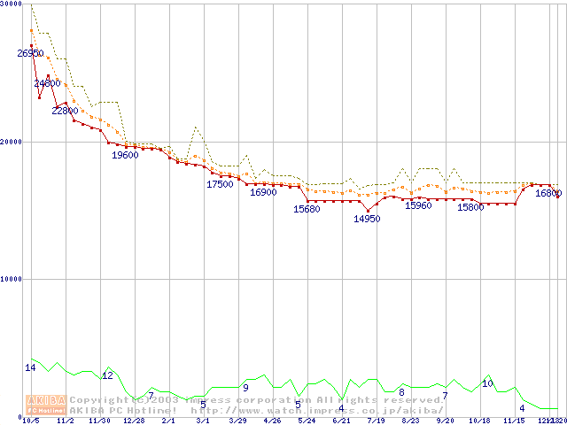 2.5インチHDD主要製品の最安値推移
