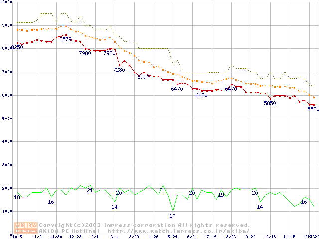 Fireball 3 (5400rpm,UltraATA/133,2MB,FDB)の最安値推移