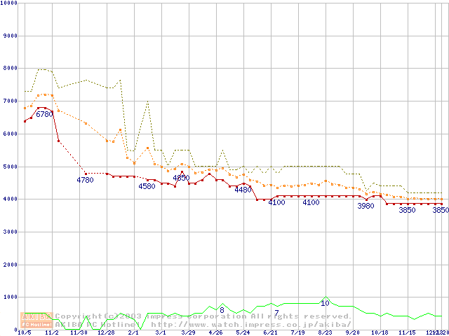 Socket 370・FSB 100MHzの最安値推移