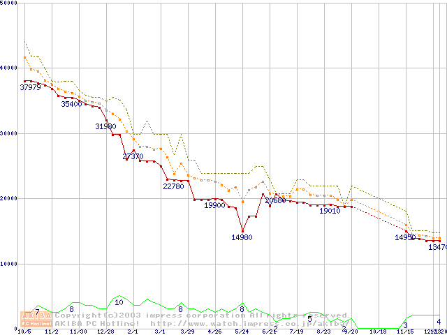 WD Caviar (7200rpm,UltraATA/100,2MB)の最安値推移