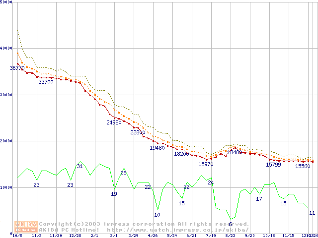 Deskstar 180GXP (7200rpm,8MB,UltraATA/100,FDB)の最安値推移