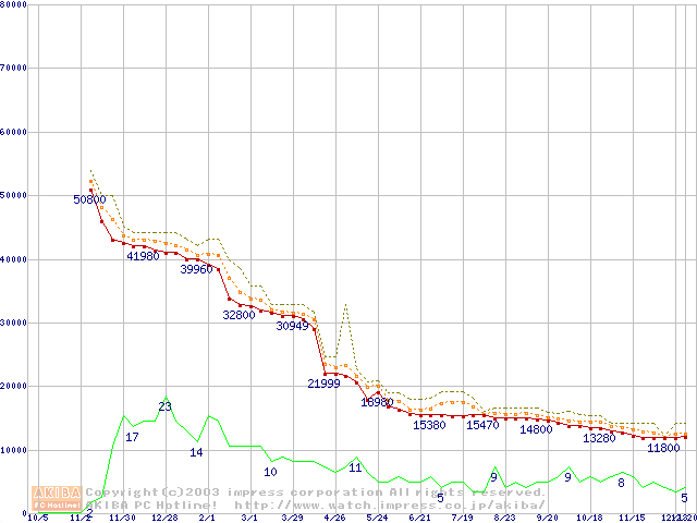 Socket A (OPGA,FSB 333MHz,L2 256KB,Thoroughbred)の最安値推移