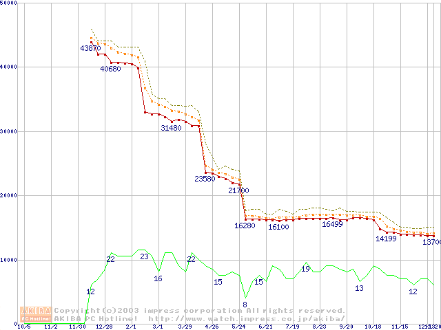 Athlon XP 2700+ (2.17GHz) リテールパッケージの価格推移