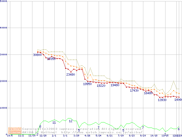 Athlon MP 2400+ (2GHz) リテールパッケージの価格推移