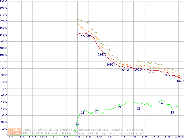 Barracuda 7200.7 (7200rpm,UltraATA/100,2MB,80GB/Platter,FDB)の最安値推移