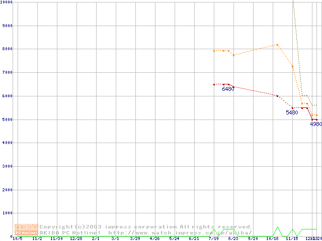 PC3600(DDR450) DDR SDRAM DIMMの最安値推移