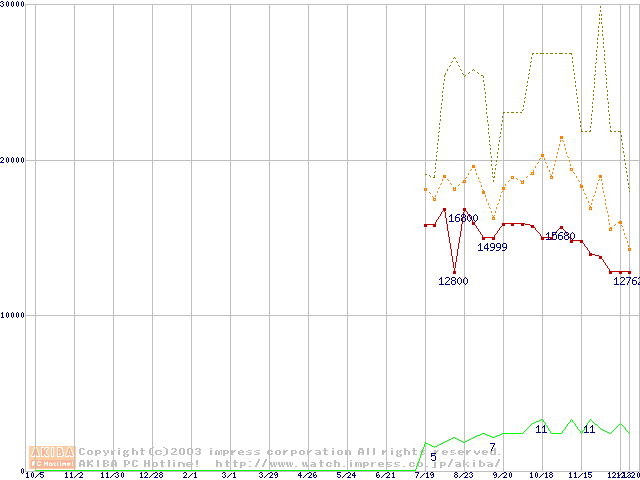 PC4000(DDR500) DDR SDRAM DIMMの最安値推移