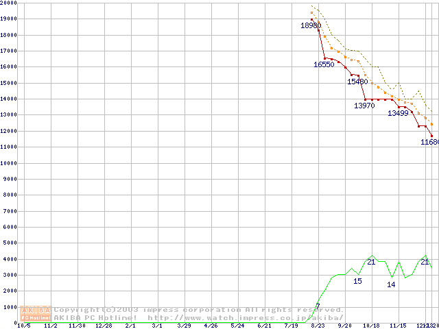 Deskstar 7K250 (7200rpm,UltraATA/100,FDB)の最安値推移