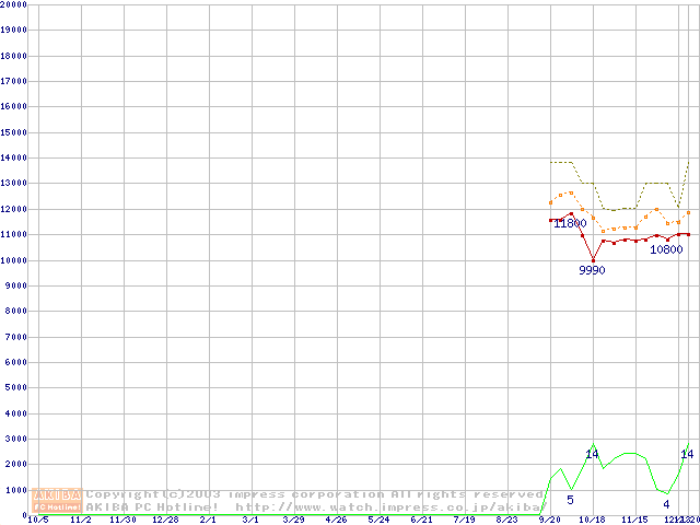 Travelstar 5K80 (9.5mm,5400rpm,UltraATA/100,8MB,FDB,40GB/Platter)の最安値推移