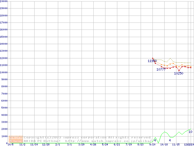 Socket A (OPGA,FSB 333MHz,L2 512KB,Barton)の最安値推移