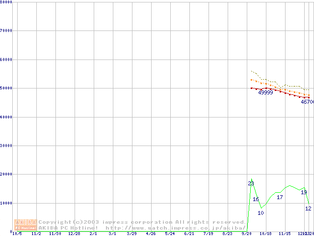 Athlon 64 3200+(2GHz,L2 1MB) リテールパッケージの価格推移