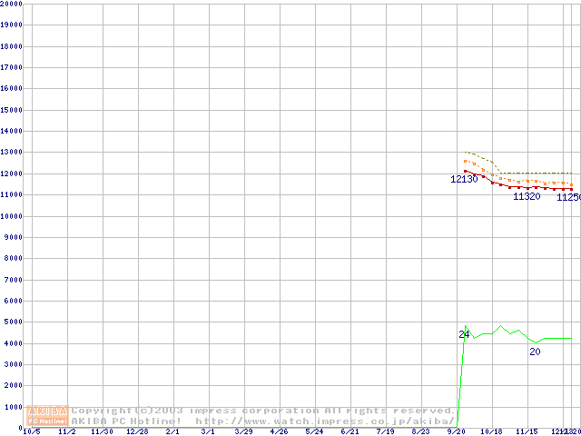 Socket 478 (micro-PGA,FSB 400MHz,L2 128KB,Northwood)の最安値推移