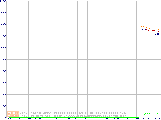 Socket A (OPGA,FSB 266MHz,L2 256KB,Thoroughbred)の最安値推移