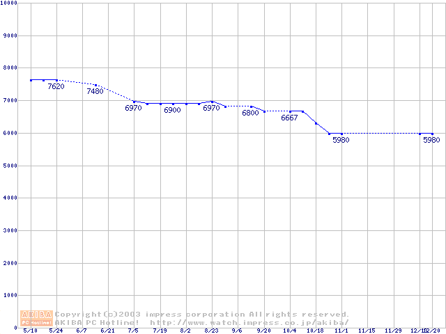 | [↑前グラフ]: | Socket A (OPGA,FSB 266MHz,L2 256KB,Thoroughbred)の最安値推移 |
