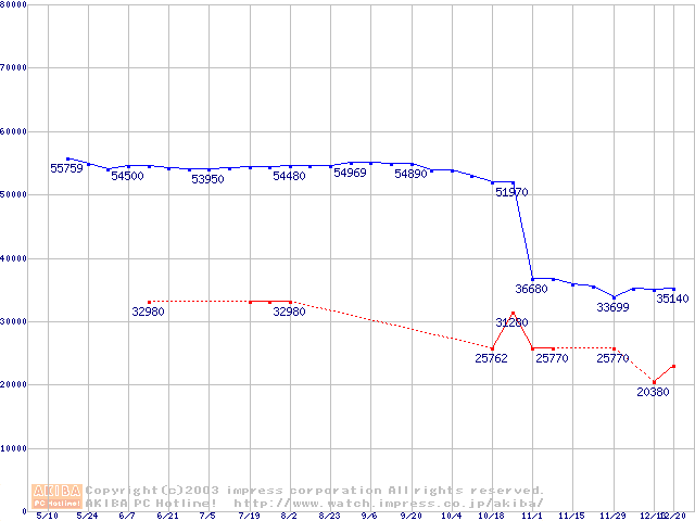 | [↓次グラフ]: | Socket A (OPGA,FSB 333MHz,L2 512KB,Barton)の最安値推移 |