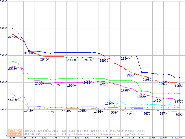 | [↓次グラフ]: | Socket A (OPGA,FSB 333MHz,L2 256KB,Thoroughbred)の最安値推移 |