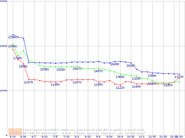 | [↓次グラフ]: | Socket A (OPGA,FSB 266MHz,L2 256KB,Thoroughbred)の最安値推移 |