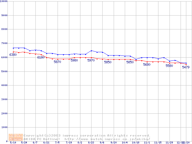 | Fireball 3 (5400rpm,UltraATA/133,2MB,FDB)の最安値推移 |