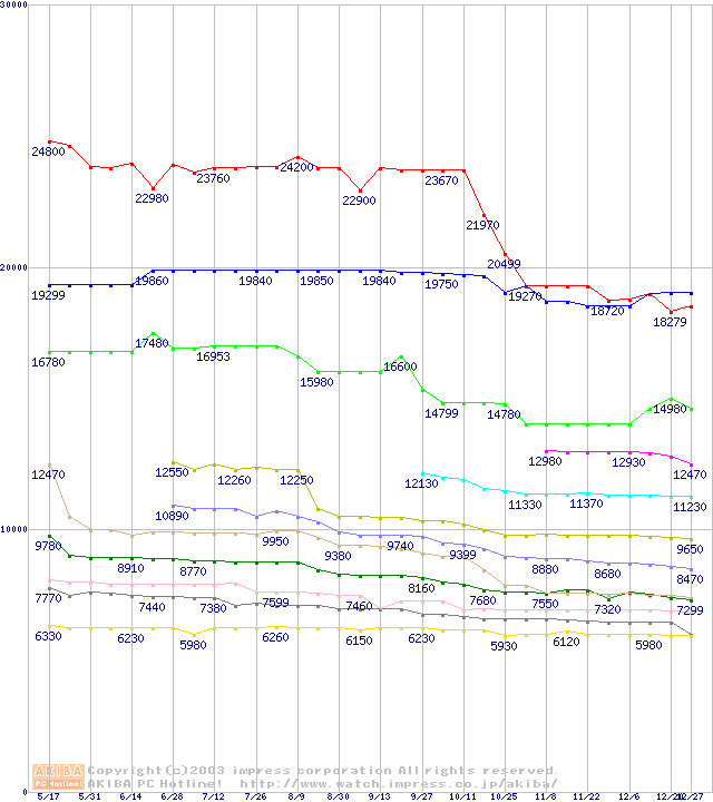 | [↓次グラフ]: | Socket 370・FSB 133MHzの最安値推移 |